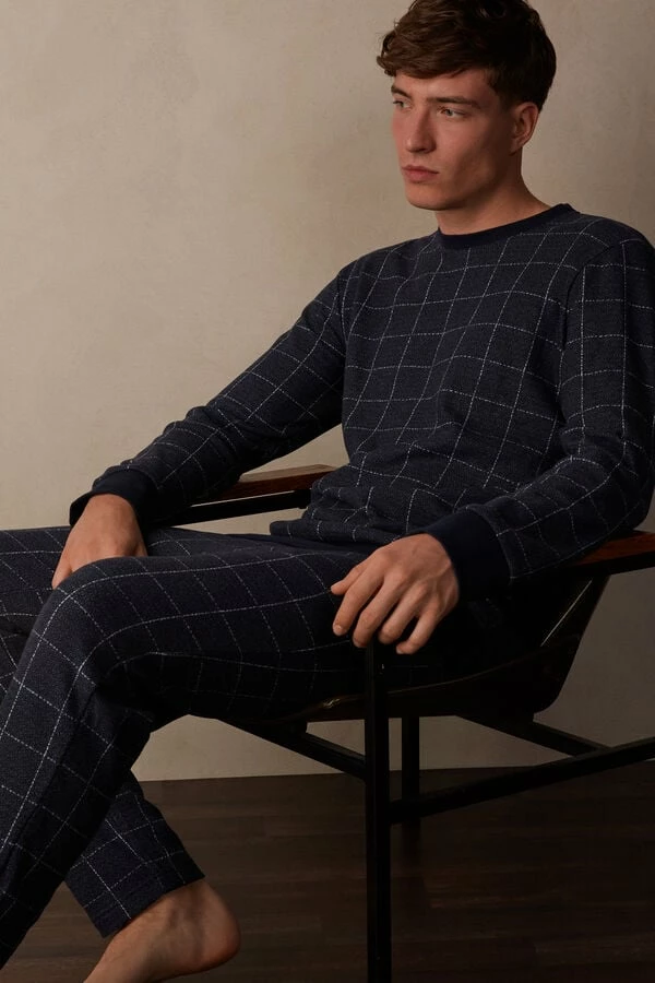 New โจ Intimissimi Men Avio Blue Check Full Length Pajamas In Cotton Aviation Blue Check Print ๐