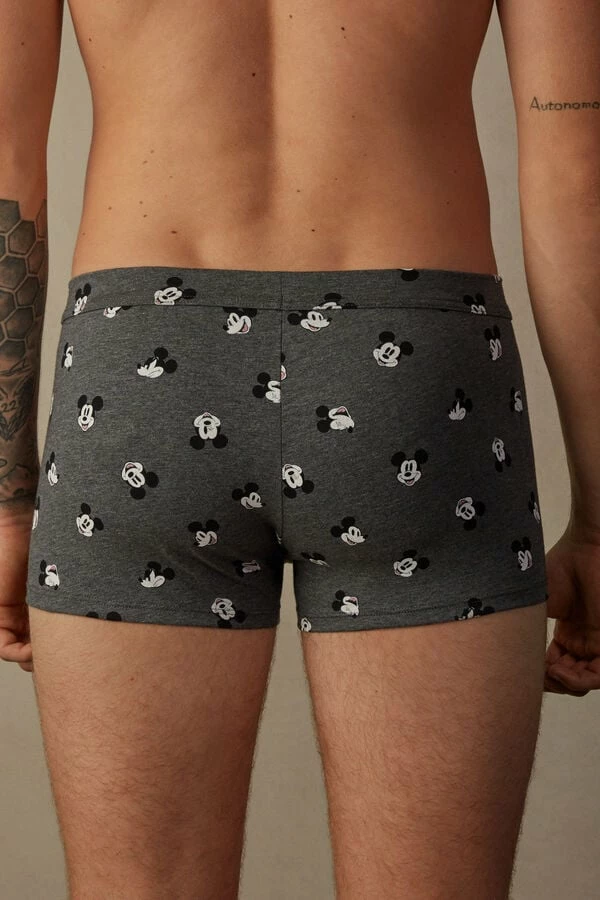 New ⭐ Intimissimi Men ©Disney All Over Mickey Faces Boxers In Stretch Supima® Cotton Graphite Grey Heather Mickey Faces Print 🥰