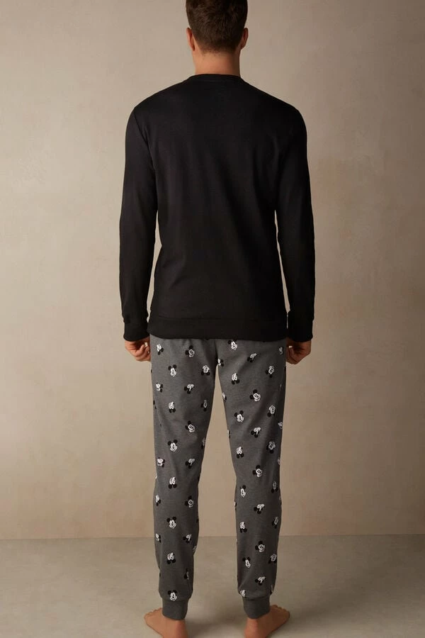 Buy ✔️ Intimissimi Men ©Disney Mickey Face Full Length Pajamas In Cotton Interlock Black ⭐