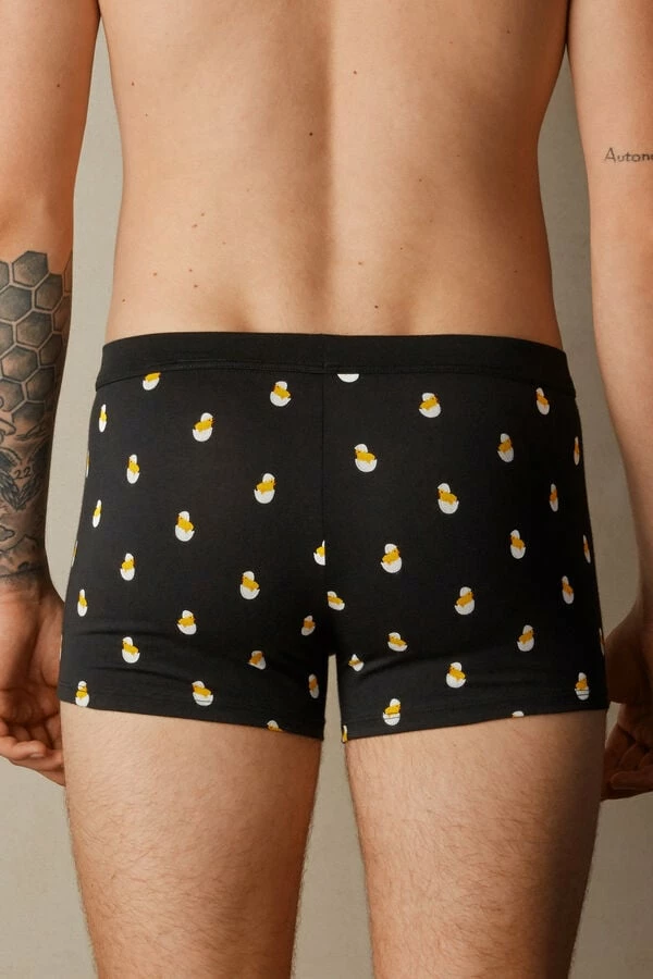 Outlet 🎁 Intimissimi Men Chick Boxers In Stretch Supima® Cotton Black Chick Print 😉