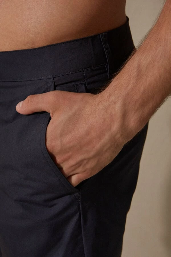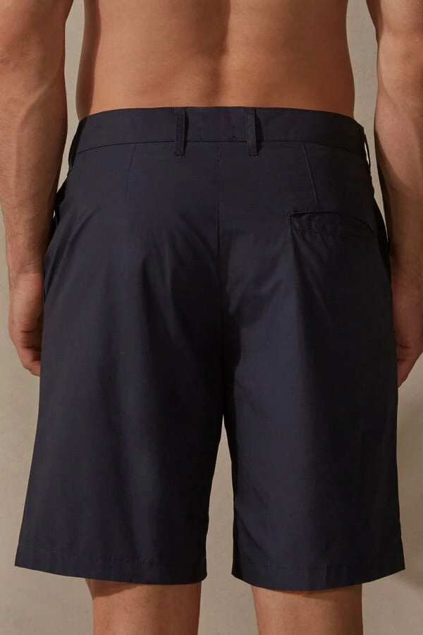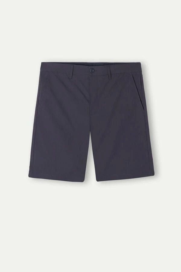 Cotton Bermuda shorts. Zip and button closure with belt loops at waist. Front pockets and back pocket.