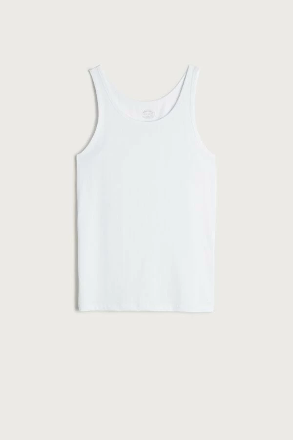 Crew neck tank top in stretch Supima cotton. A simple and comfortable style.