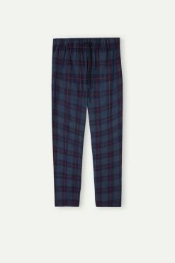 Coupon π€© Intimissimi Men Full Length Pants In Check Patterned Brushed Cloth Blue Check π
