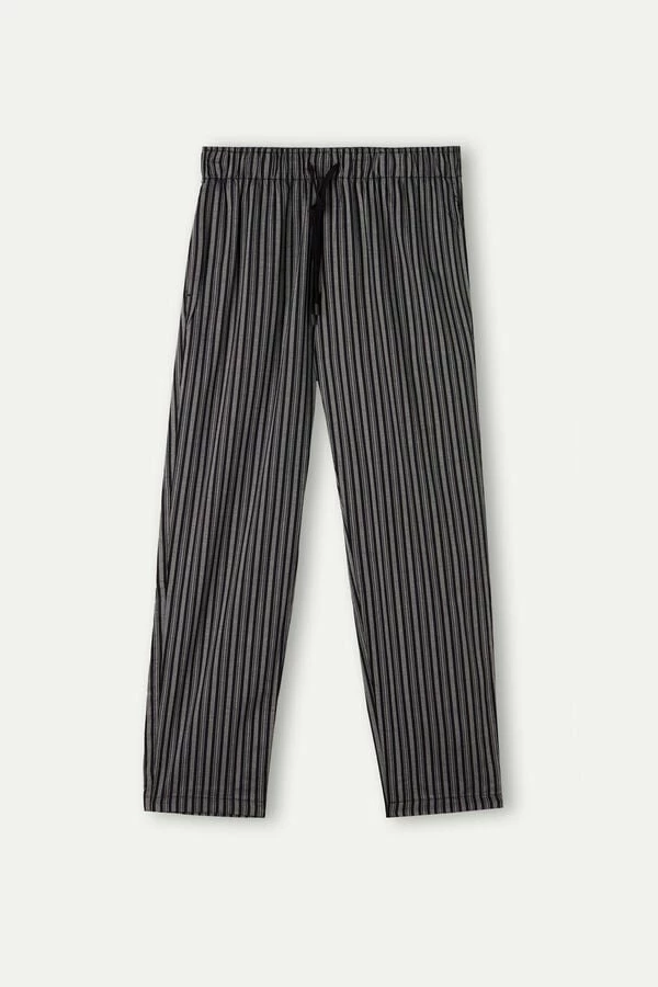 Cheap ๐งจ Intimissimi Men Long Gray Herringbone Linen Trousers In Canvas Grey Herringbone Stripe ๐