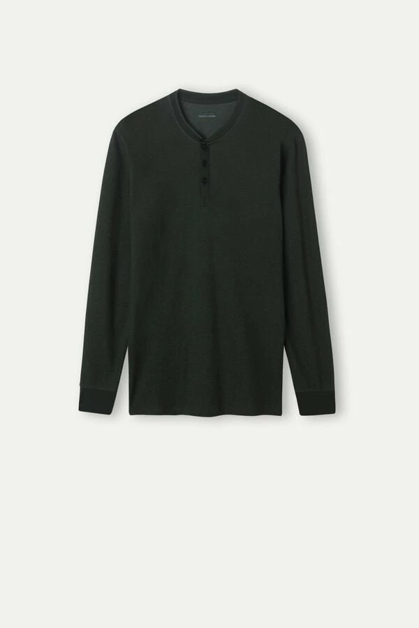 Coupon ๐ Intimissimi Men Long Sleeve Henley Top In Warm Cotton Midnight Green ๐งจ
