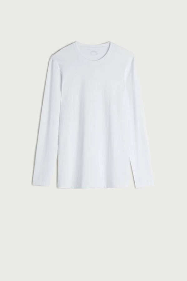 Best Pirce 💯 Intimissimi Men Long-Sleeve Supima® Cotton Top White 💯