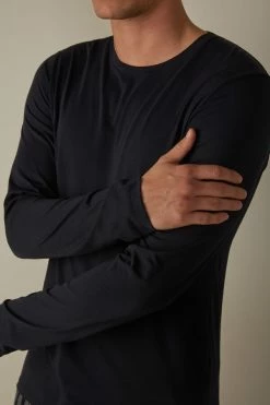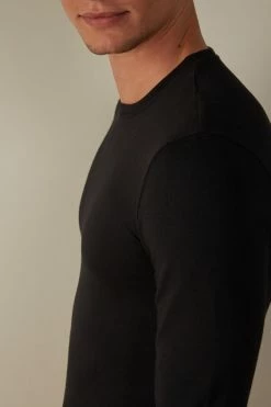 Best deal ⌛ Intimissimi Men Long-Sleeve Stretch Supima Cotton Top Black ❤️