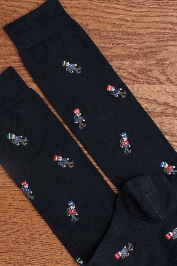Cheap ⌛ Intimissimi Men Grumpy Print Long 🧦 Socks In Soft Cotton Dark Blue Grumpy Print 🤩