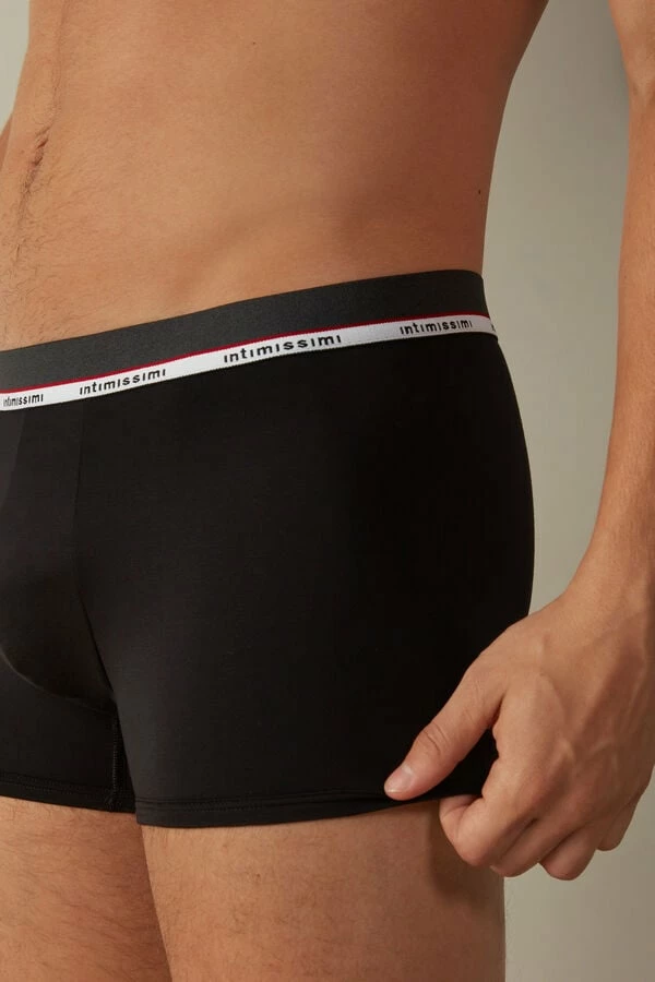 Men’s stretch-micromodal boxers with exposed logo waistband.