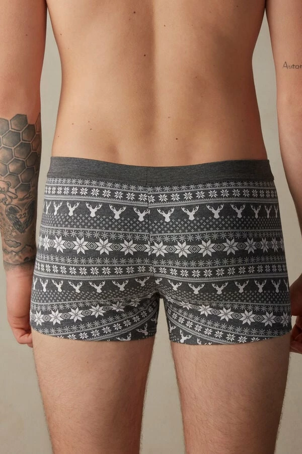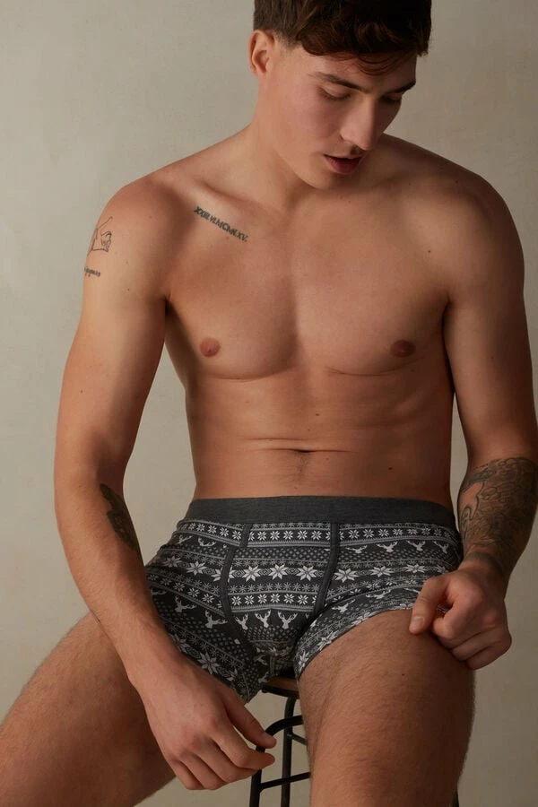 New ❤️ Intimissimi Men Norwegian Pattern Boxers In Stretch Supima® Cotton Graphite Grey Heather Fair Isle Print 😀