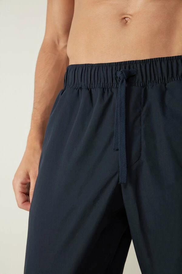 Long pants in cotton cloth with side pockets and drawstring waist.