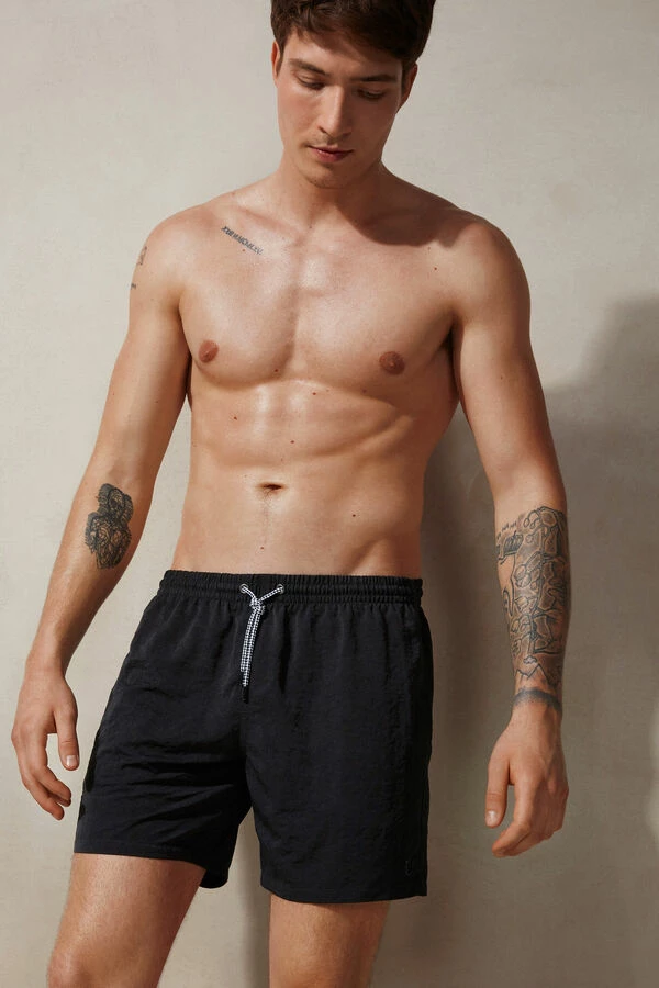 Promo π Intimissimi Men Plain Mid-Length Swim Shorts Black π