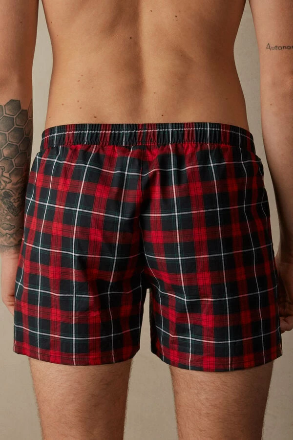 Cotton cloth boxers in red Tartan print. Front fly. Relaxed fit.