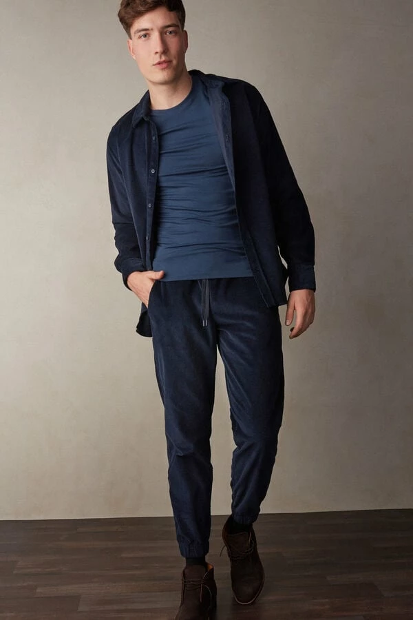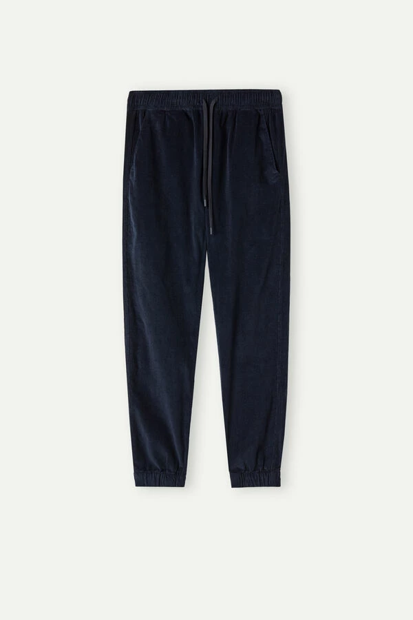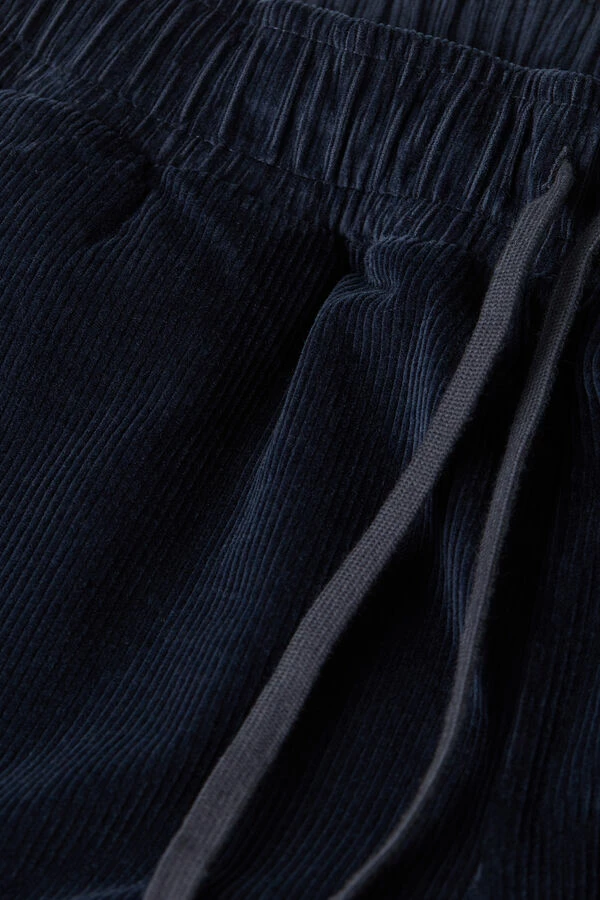 Full length pants in ribbed cotton velvet. Drawstring waist and cuffed hems. Side pockets and back pocket. Regular fit. Casual style perfect for cozy loungewear and comfortable to use for free time.