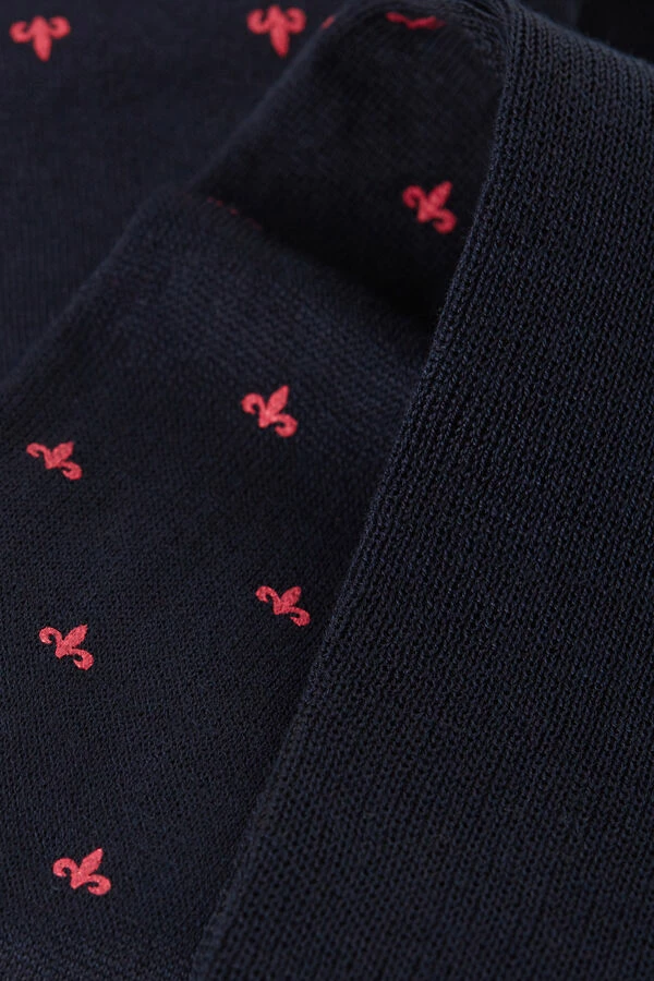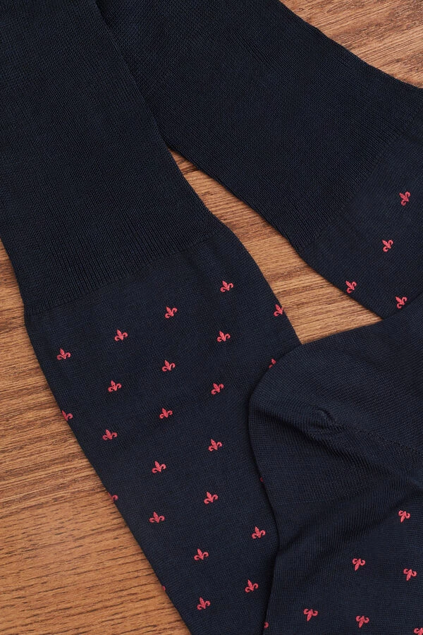Long socks in lisle cotton with English style cuffs. Especially light, breathable and fresh yarn. Available in different patterns.