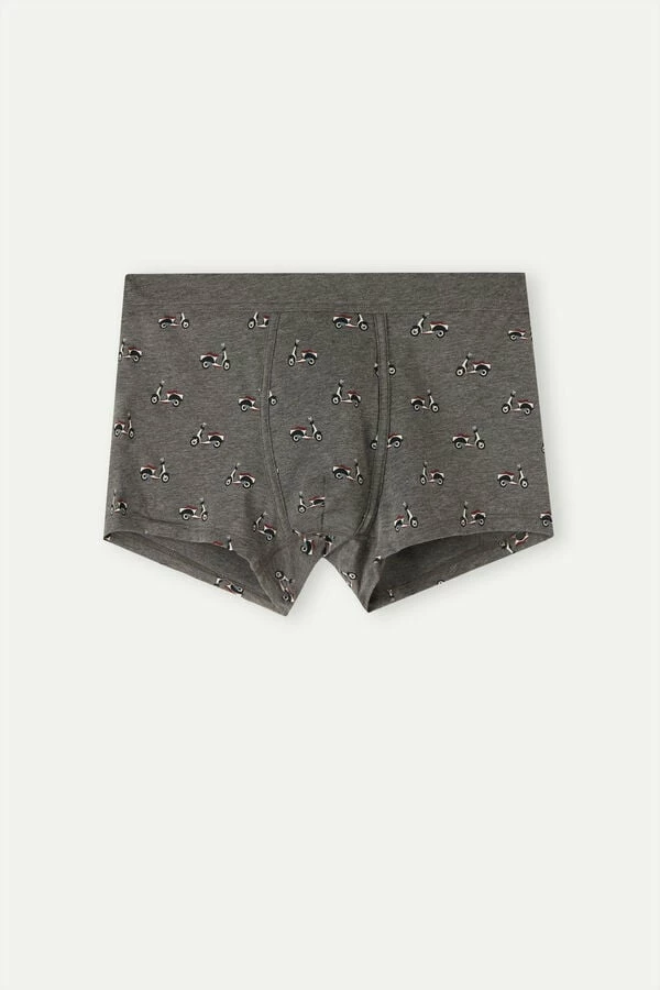 Boxers with scooter print in soft stretch Supima® cotton. Covered soft elastic. Softly hugs the body.