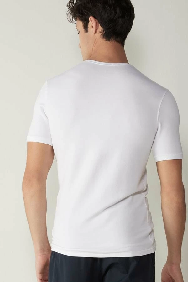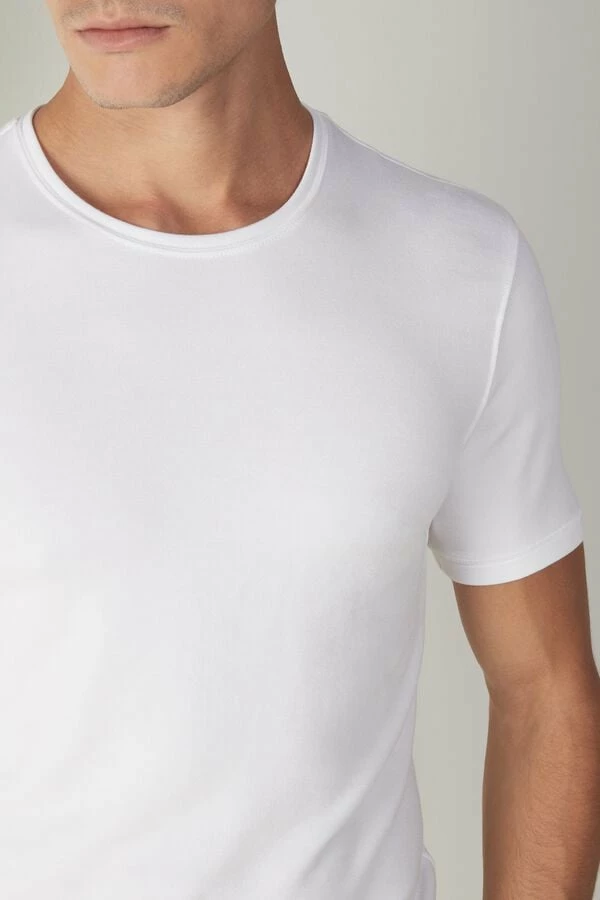 Men’s short-sleeve round-neck top in a modal-cashmere-blend. Incredibly soft and comfortable. The model is 185 cm tall and wears size L. Sold in Intimissimi Man stores.
