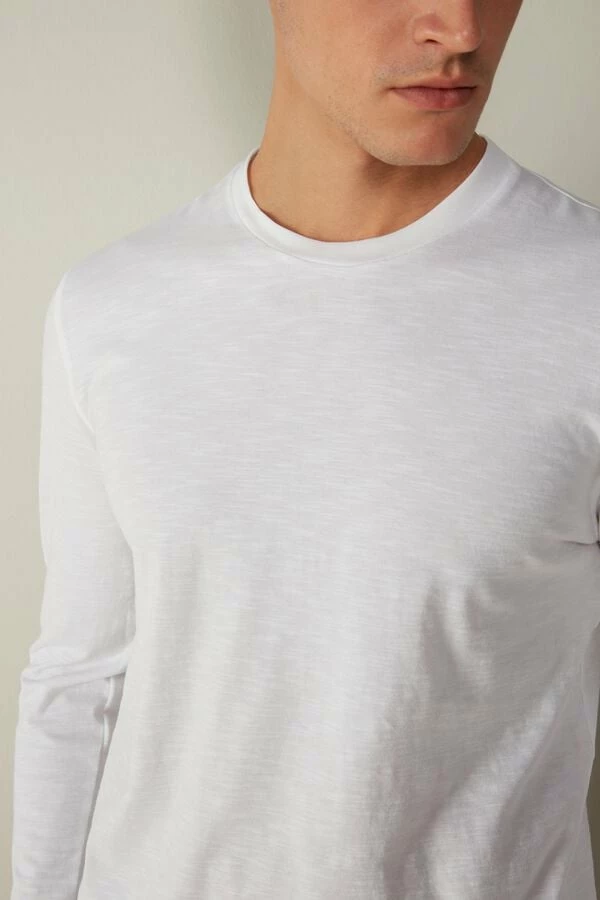 Deals ✨ Intimissimi Men Slub Cotton Long Sleeve Top White 🥰
