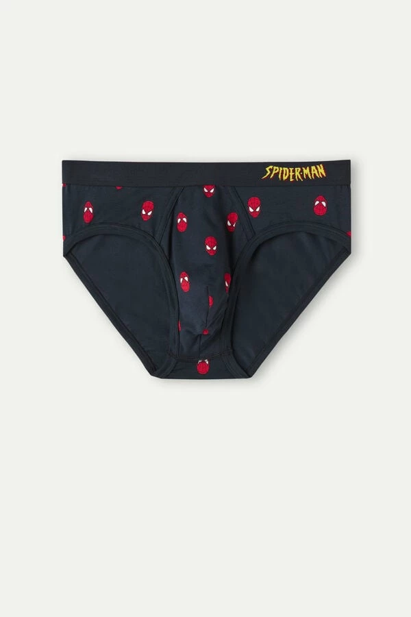Briefs with Spider-Man mask print in soft stretch Supima® cotton. Exposed soft elastic, brushed on the interior, with Spider-Man text. Softly hugs the body.