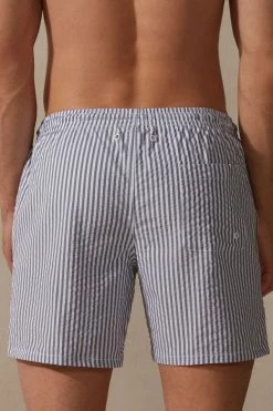 Wholesale ๐ Intimissimi Men Washed Striped Swim Trunks Stone Washed Blue Stripes ๐