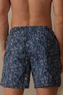 Cheapest โ Intimissimi Men Cactus Print Swim Trunks Intense Blue Cactus Outline Print โ๏ธ