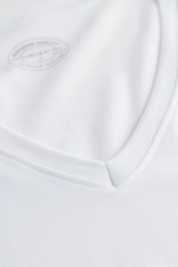 Short sleeve V-neck T-shirt in stretch Supima® cotton. The fiber of the highest quality, incredibly soft and breathable, it features optimal elasticity. The structure of the fabric guarantees excellent durability from washing. A simple and comfortable piece.