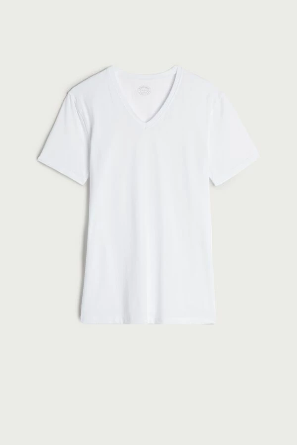 Hot Sale 😀 Intimissimi Men V-neck T-shirt In Stretch Supima® Cotton White 🔔