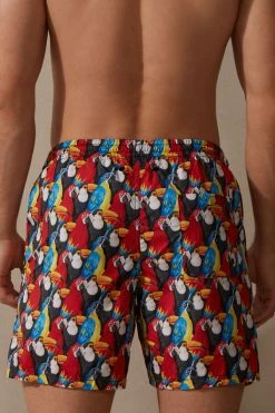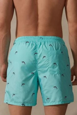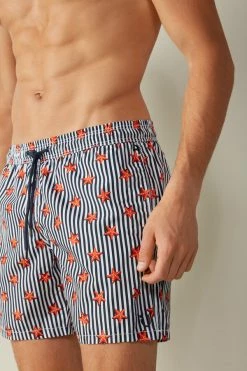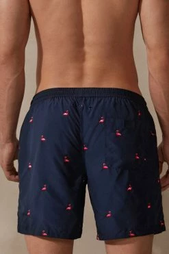 New โ Intimissimi Men Embroidered Flamingo Swim Trunks Intense Blue With Flamingos ๐